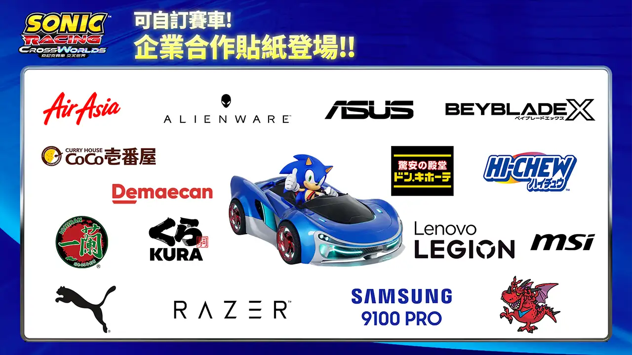 《索尼克賽車 交叉世界》決定與16間現實中的企業・品牌合作!可在遊戲內自訂賽車的合作貼紙登場!
