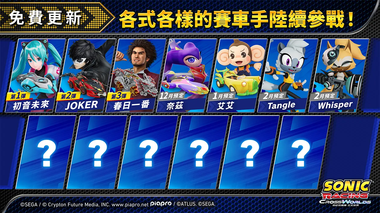 「奈茲」、「艾艾」、「Tangle」和「Whisper」將以賽車手之姿登場,此外還將實裝重現「奈茲」、「猴子球」系列特色的特別賽車!