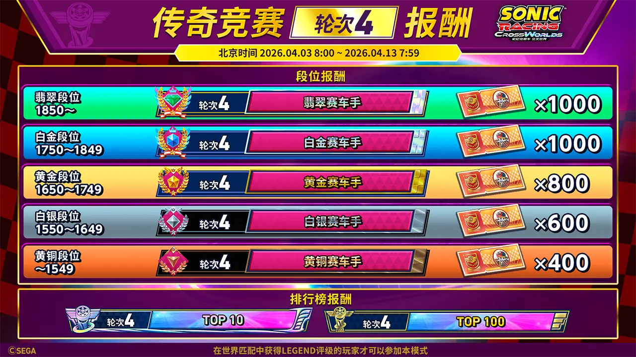 此外,轮次4结束时的段位,将决定下一轮传奇竞赛的初始段位。