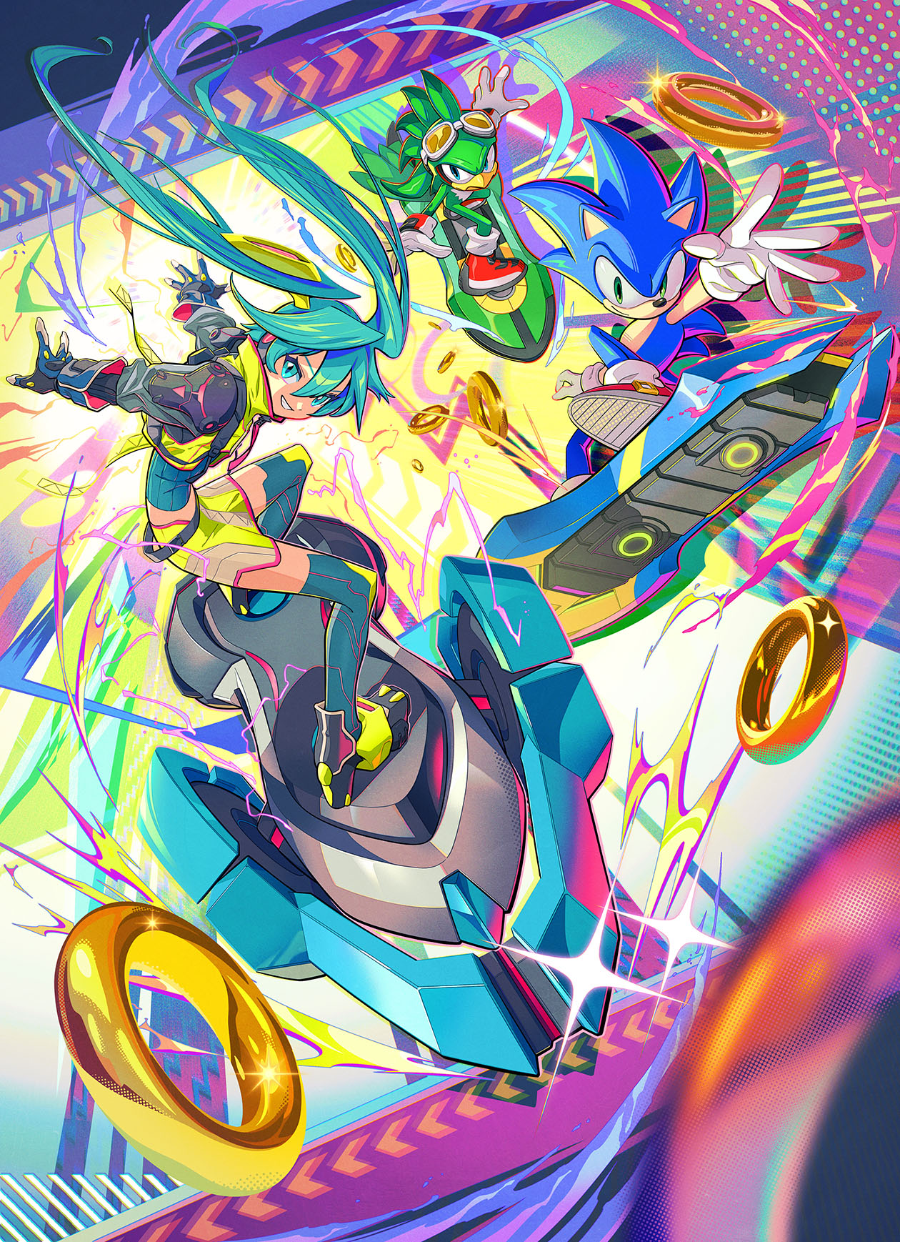 Hatsune Miku provides the track's vocals, and thanks to her synergy with Sonic, this blue tag team transformed the song into one that's both electrifying and zips by in a flash.