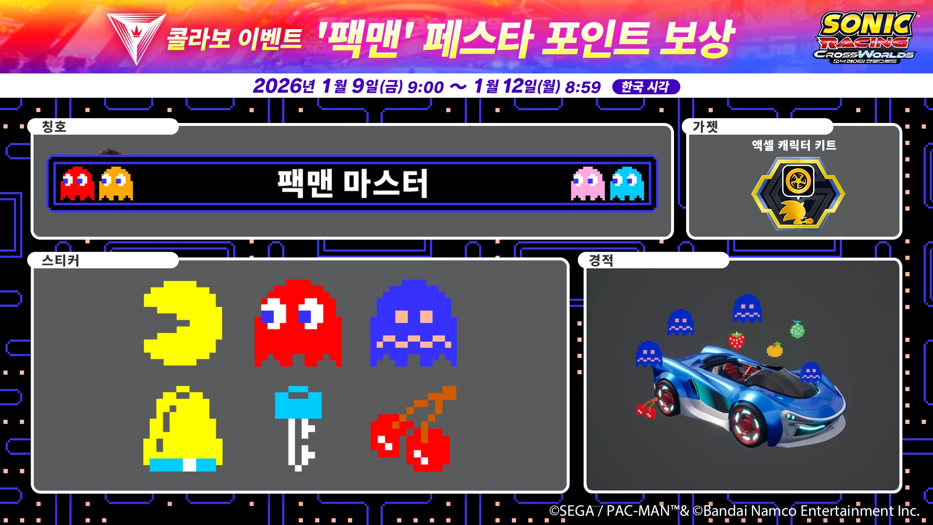 '팩맨', '블링키', '잉키', '핑키', '클라이드'가 소닉 레이싱 크로스월드에 참전!