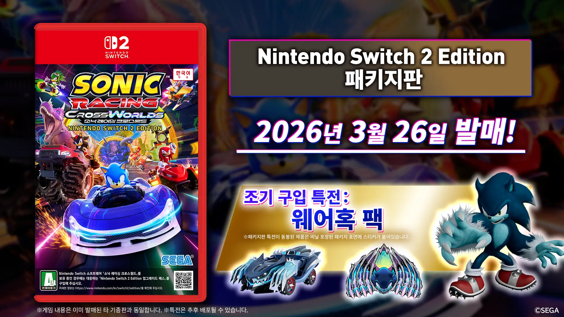 2026년 3월 26일, 『소닉 레이싱 크로스월드: Nintendo Switch 2 Edition』(패키지판)이 발매됩니다.