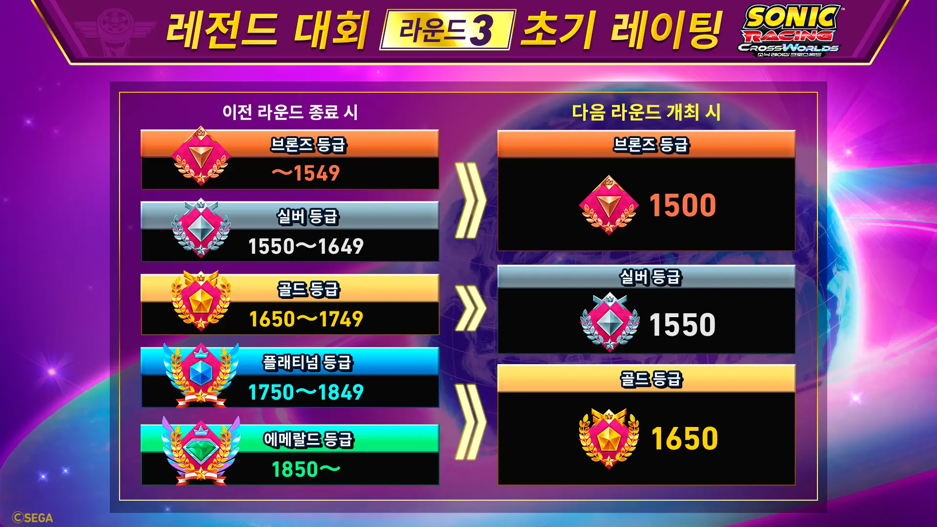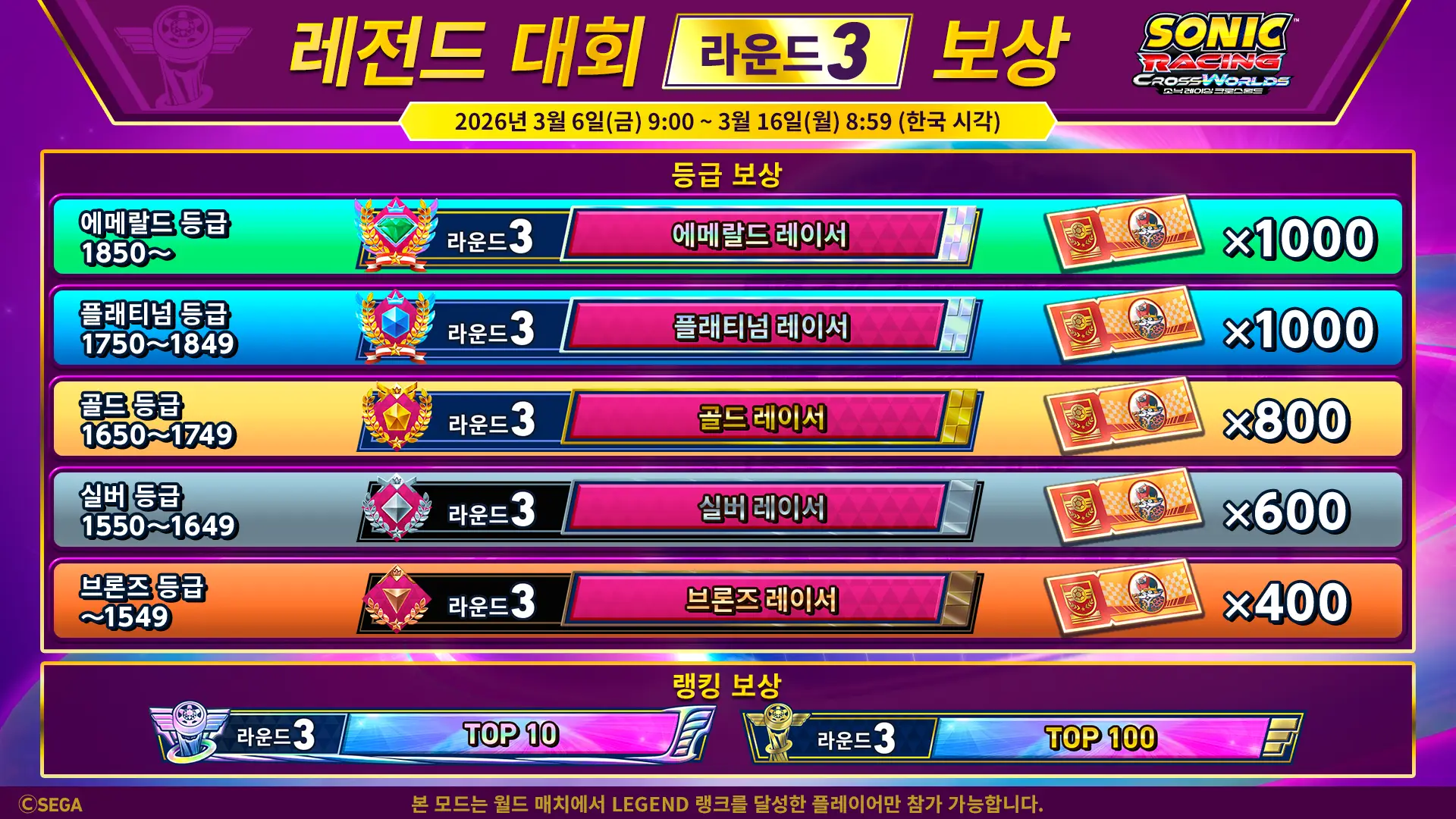 또한 라운드 3 종료 시점의 등급에 따라 다음 레전드 대회 개최 시의 등급이 결정됩니다.