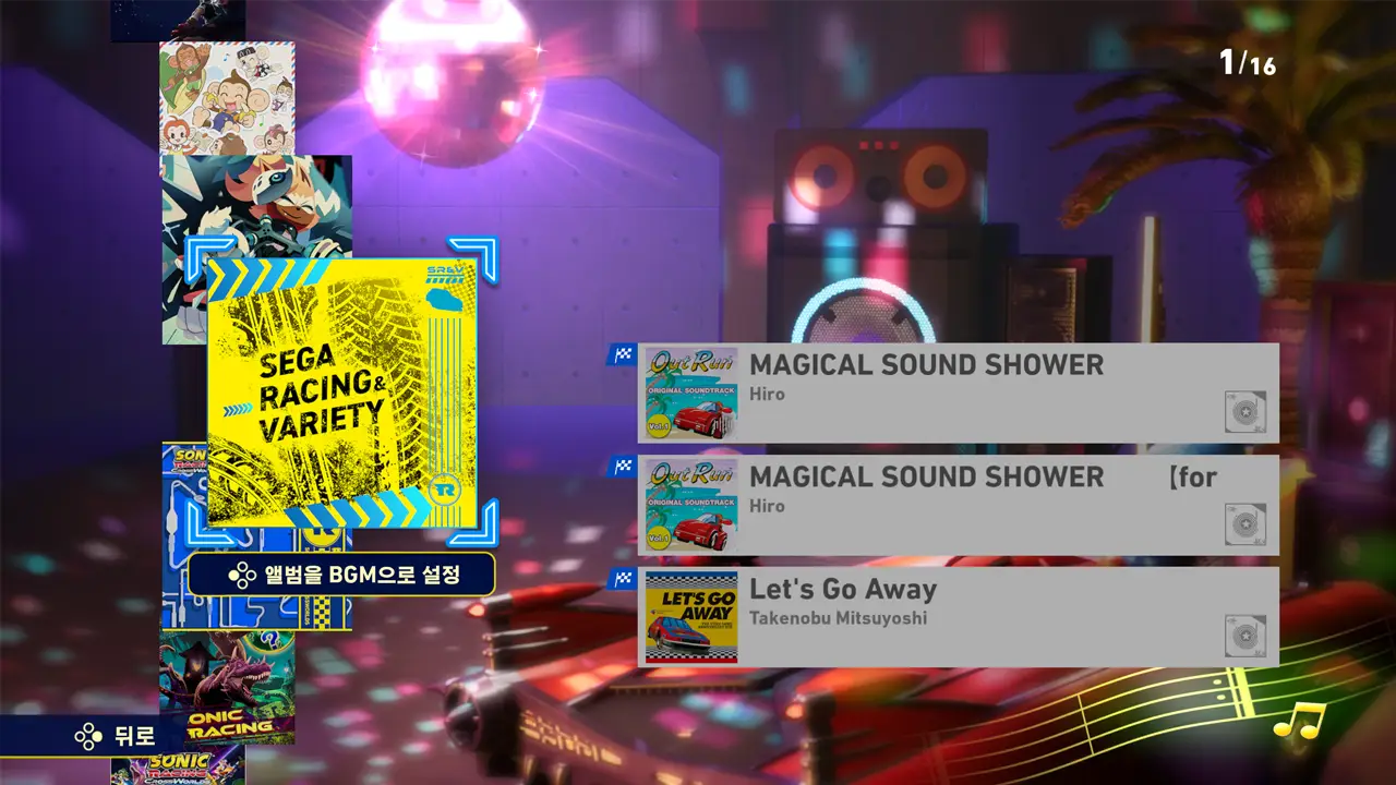 - • 추억의 세가 레이싱 음악 8곡이 수록된 앨범 '세가 레이싱 & 버라이어티' 추가
