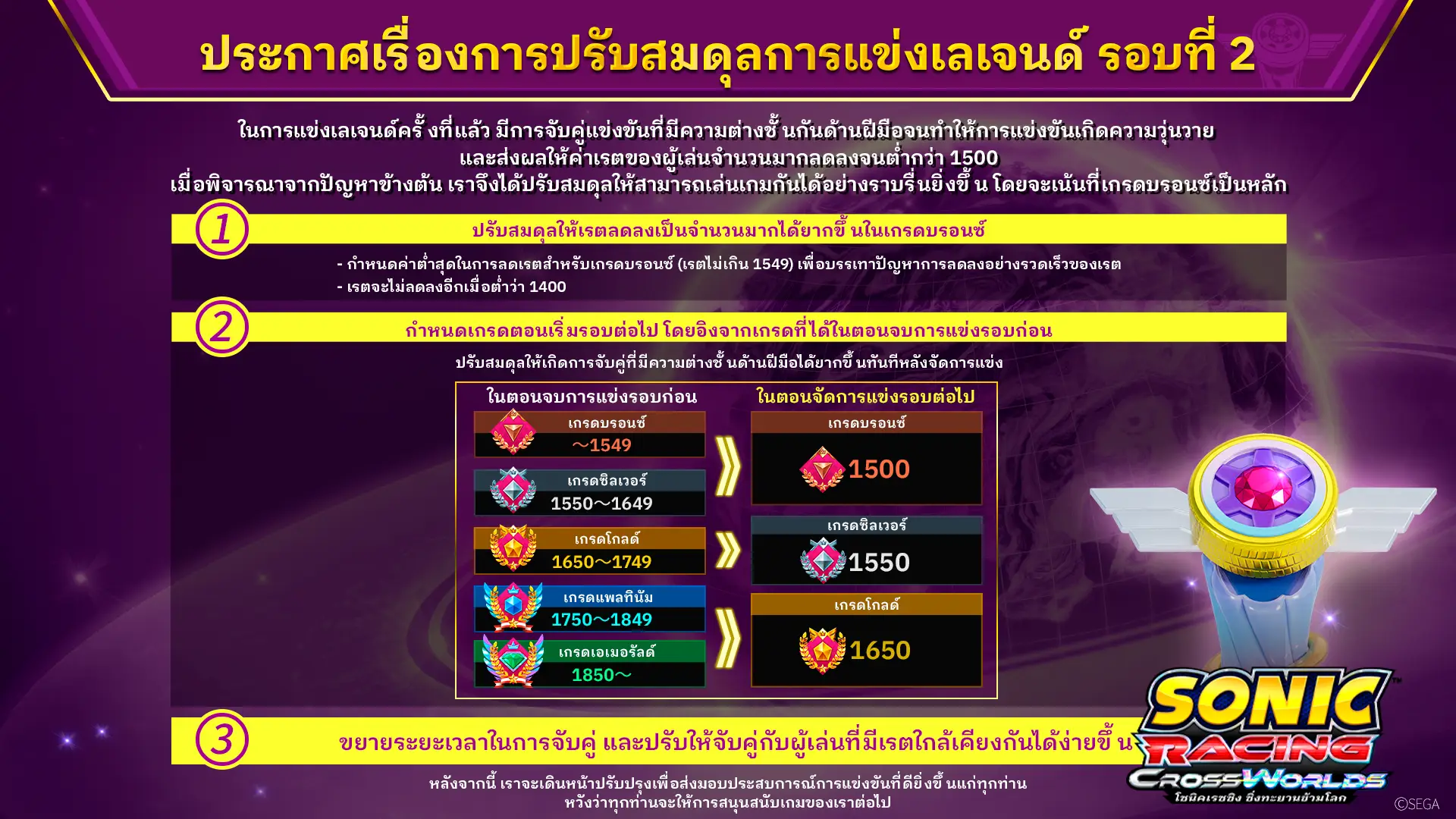 รายละเอียดการปรับสมดุลการแข่งเลเจนด์ รอบที่ 2