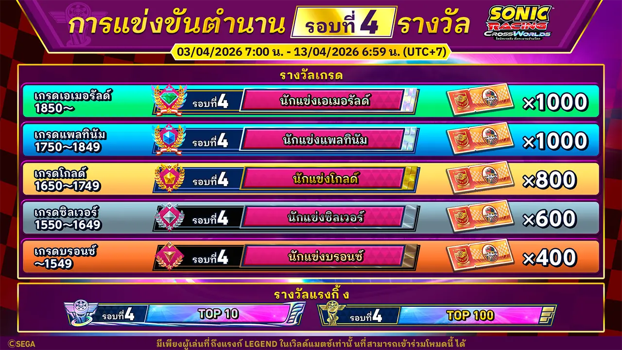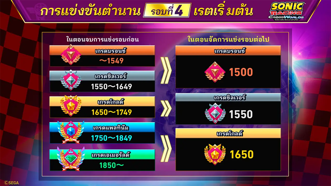 นอกจากนี้ เกรดในตอนเริ่มการแข่งเลเจนด์ครั้งต่อไป จะถูกกำหนดตามเกรดที่ได้ในตอนจบการแข่งรอบที่ 4