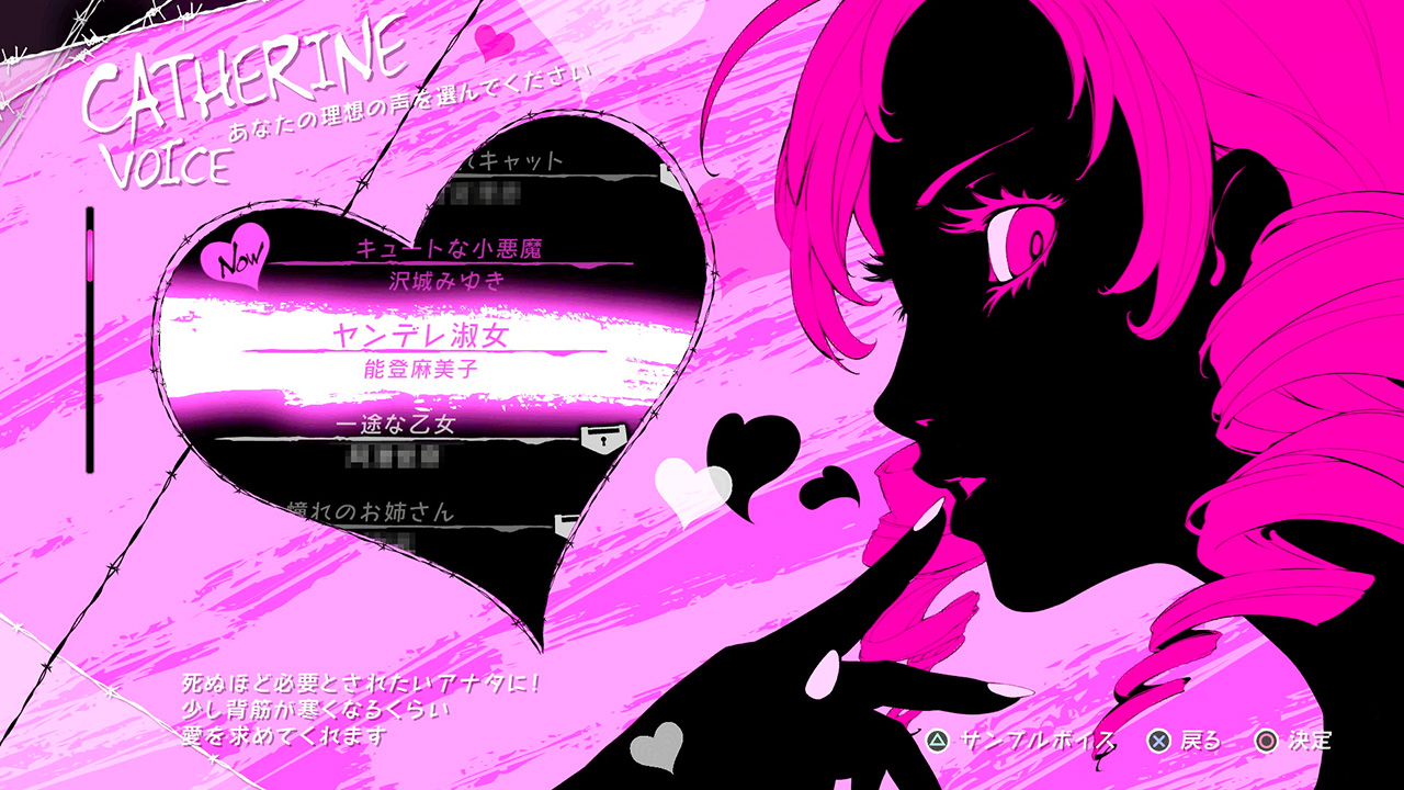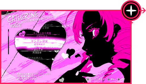 01 Cathrine "이상의 보이스" 전 보이스 세트 기존의 2명에 더하여 인기 여성 성우 9명의 보이스를 선택할 수 있다. 나만의 이상의 캐서린을 찾아라.