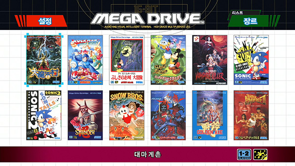 또한, Mega Drive Mini는 판매 지역마다 수록 타이틀이 다릅니다.타지역 한정으로 수록된 타이틀은 본체 언어 설정을 전환하여도 추가되지 않습니다.미리 양해 부탁드립니다.