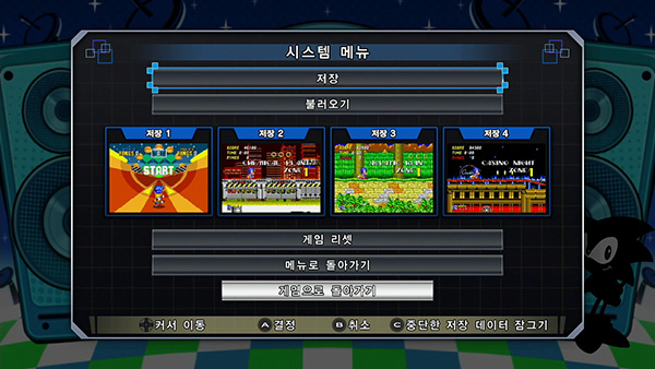 모든 게임은 1게임당 4군데까지 플레이 중 중단 저장이 가능합니다. 짧은 시간에 조금씩 진행하고 싶을 때와 긴 이벤트 도중에도 저장을 할 수 있습니다. 또한 난이도가 높은 스테이지나 보스 직전에 저장하면 몇 번이든 불러와 반복 플레이를 할 수 있기 때문에 당시에는 클리어할 수 없었던 그 게임도 이제 드디어 자신의 힘으로 엔딩을 볼 수 있을지도 모릅니다.