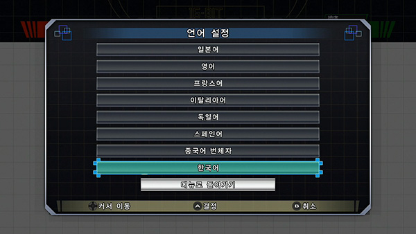 메뉴를 영어 및 유럽 언어로 설정→영어 게임이 기동