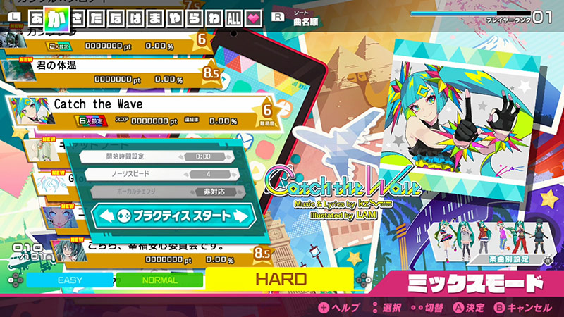 시리즈 첫 수록곡을 포함하여 지난 10년간의 역사를 장식한 98곡과 본작을 위하여 새롭게 제작한 테마송 'Catch the Wave'(Music & Lyrics by kz(livetune))를 추가한 총 99곡을 플레이할 수 있습니다.