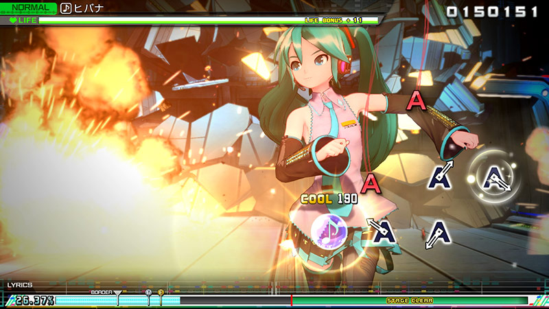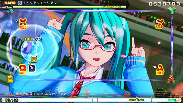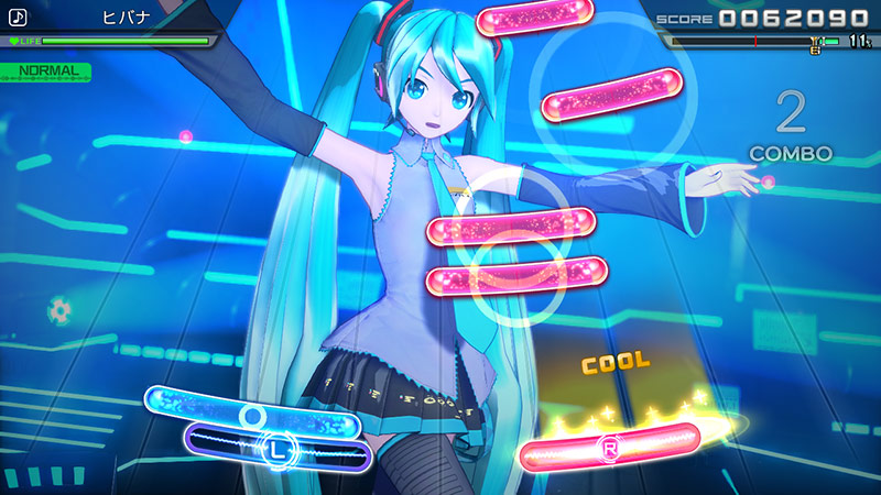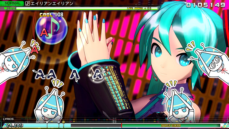 <하츠네 미쿠 프로젝트 디바 MEGA39’s>의 리듬 게임은 <하츠네 미쿠 Project DIVA Arcade Future Tone>과 크게 다르지 않은 플레이 방법의 '아케이드 모드'에 더하여 Nintendo Switch™의 특성을 이용한 새로운 게임 모드 '믹스 모드'가 추가되었습니다.