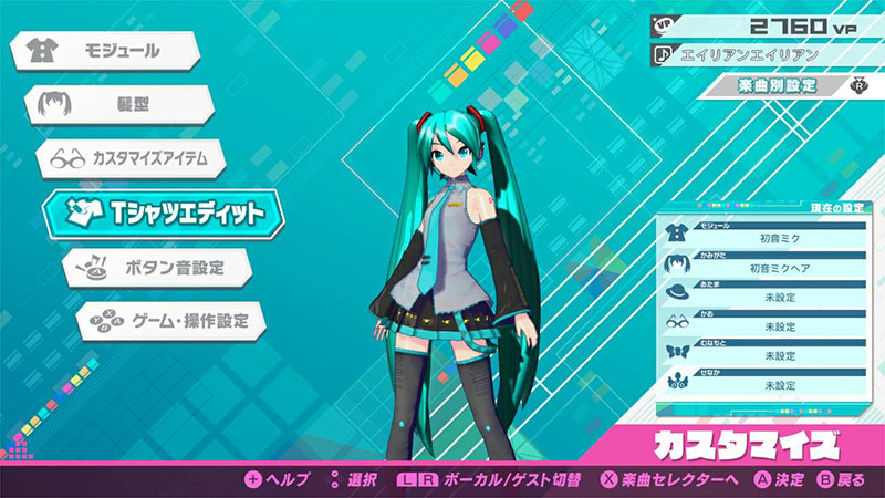 <하츠네 미쿠 프로젝트 디바 MEGA39’s>의 새로운 기능으로 '티셔츠 에디트'를 추가!