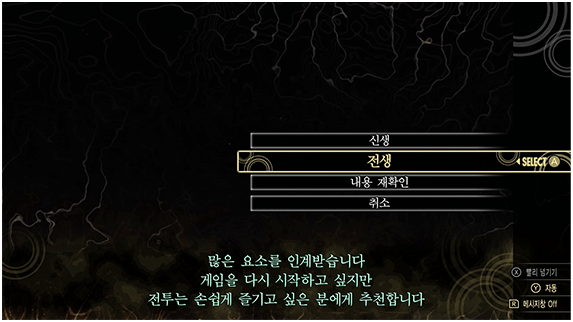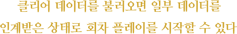 본 작품에서는 본편을 클리어한 이후, 클리어 데이터를 불러오면 일부 데이터를 인계받은 상태로 회차 플레이를 시작할 수 있다.데이터 인계는 아래의 2 패턴 중에서 선택할 수 있다.