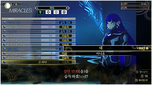 다아트 내에서는 신의 위엄을 나타내는 「미이츠」를 획득할 수 있다. 사교의 세계에서는 미이츠를 사용하면 「신의」를 습득할 수 있다. 신의란 세계의 섭리를 바꾸는 기적의 업이며, 신의의 종류는 다아트의 탐색이나 악마와의 전투가 유리해지는 것부터 대화에 영향을 끼치는 것, 합체, 스킬 적성, 성장에 관한 것까지 다양하다. 미이츠를 모아 신의를 습득하고 주인공을 강화하자.