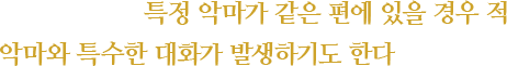그리고 특정 악마가 같은 편에 있을 경우 적 악마와 특수한 대화가 발생하기도 한다. 깊은 인연이 있는 악마끼리 발생하는 대화도 있으므로 꼭 들어보자.