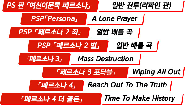 역대 페르소나 시리즈의 배틀 곡을 「P5S」의 일반 전투 BGM으로