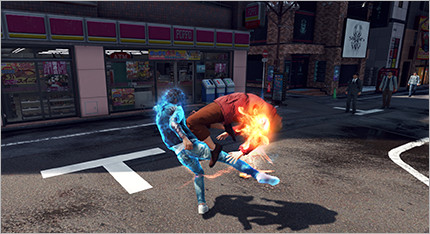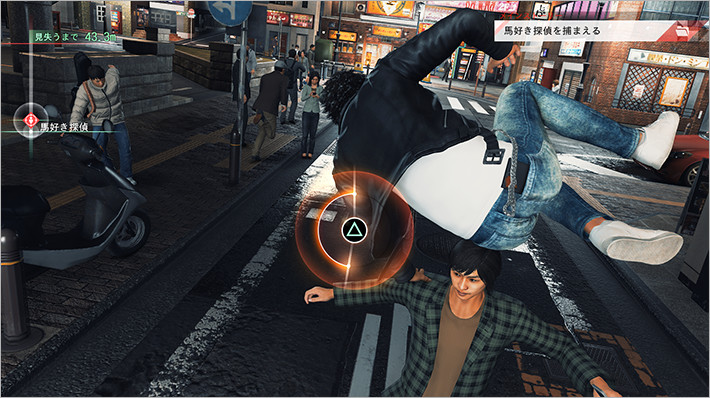 - 배틀 액션 탐정다운 다채로운 조사 액션뿐만이 아닌,「용과 같이 스튜디오」 만의 「누구나, 간단히,멋진 액션 배틀」을 즐길 수 있다.