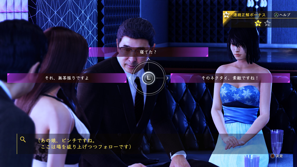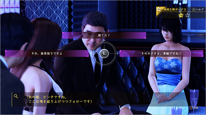 선택지 중에서 적절한 질문을 골라, 대화를 이끌어 가야만 한다.잘못된 선택지를 골라도 게임 진행에는 아무 문제가 없지만, 최적의 선택지를 계속 고르면 보너스가 발생해
