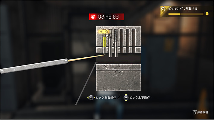 조사가 필요한 건물로 잠입하거나, 아이템이 숨겨진 문을 열 때 필요한 것이 「문 따기」