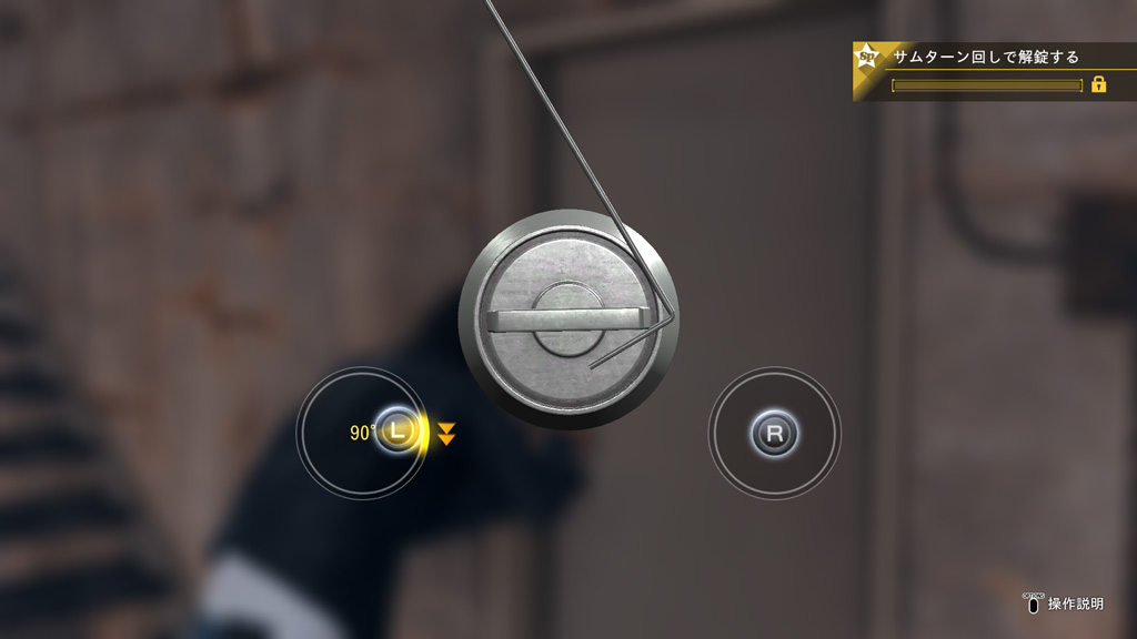 「피킹」, 「섬턴 돌리기」, 「암호 코드 해제」, 「열쇠 선택」 등, 열쇠의 타입에 따른 복수의 문 따기가 존재한다. -
