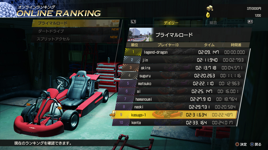 네트워크에 접속하여 플레이하면 각 코스의 타임 어택 기록을 데일리 랭킹에 등록할 수 있으며, 다른 플레이어와 타임 기록을 경쟁할 수 있다. 하루의 마지막에 랭킹이 확정되고 다음 날에는 그 순위에 따라 보수가 지급된다.