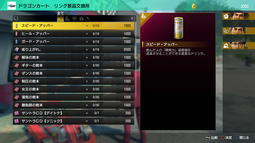 코스 위에 떨어진 링을 모으면 아이템과 교환할 수 있다. 카스가 일행의 능력치나 직업의 랭크를 높여 주는 아이템을 입수할 수 있으므로 드래곤 카트 플레이로 카스가와 동료들을 강화할 수 있다.