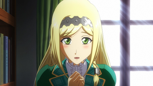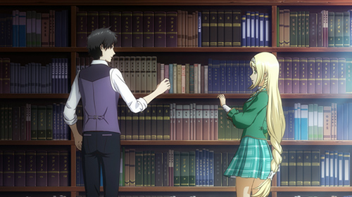 도서실에서 책을 꺼내려다 손과 손이 닿는 카미야마와 클라리스.