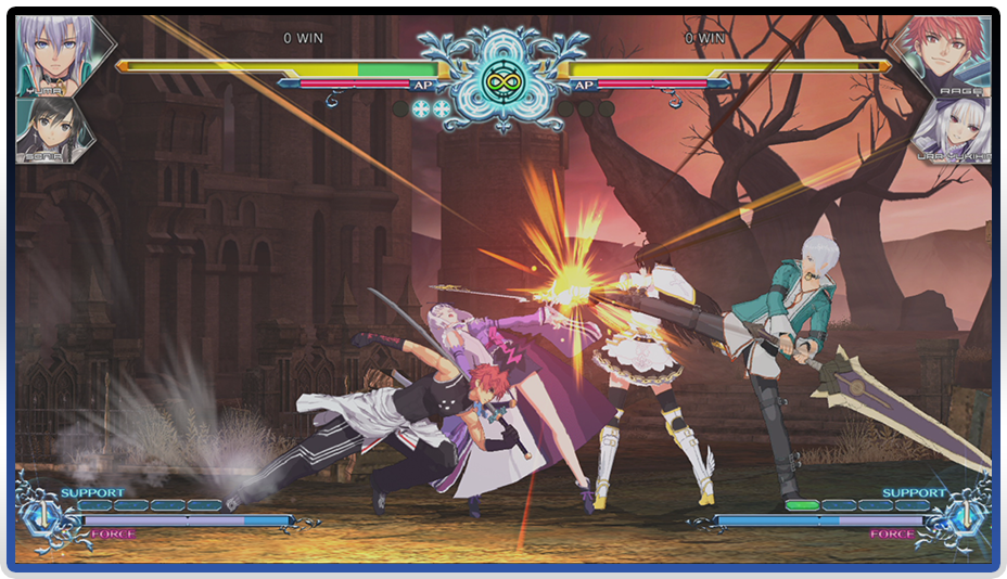 파트너 캐릭터의 지원 공격으로 서포트 게이지를 소비하여 공격하는 「서포트 링크 어택」을 비롯해 순식간의 돌진 공격으로 간격을 좁혀 무방비한 적에게 공격을 가하는 「오펜시브 포스」와 파트너와 함께 구사하는 초필살기 「링크 포스 어택」등, 다채로운 공격과 방어를 사용하여 라이벌과 전투를 펼치자.
