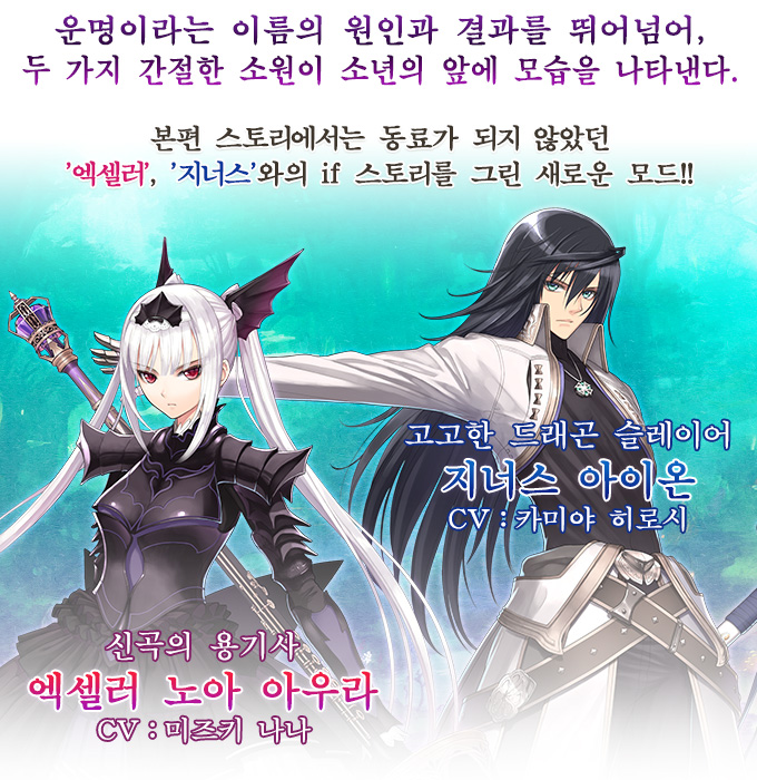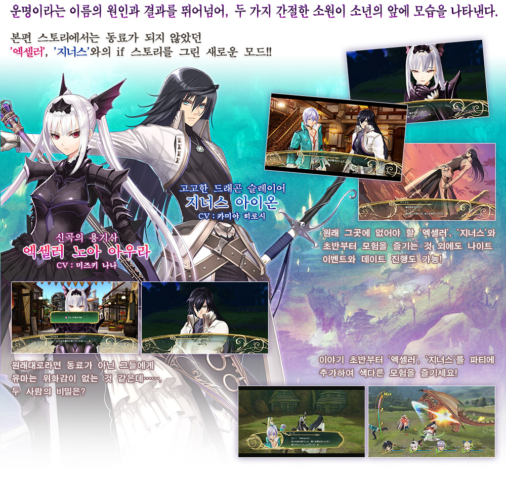 원래 그곳에 없어야 할 '엑셀러', '지너스'와 초반부터 모험을 즐기는 것 외에도 나이트 이벤트와 데이트 진행도 가능!