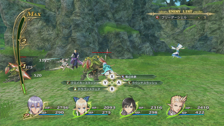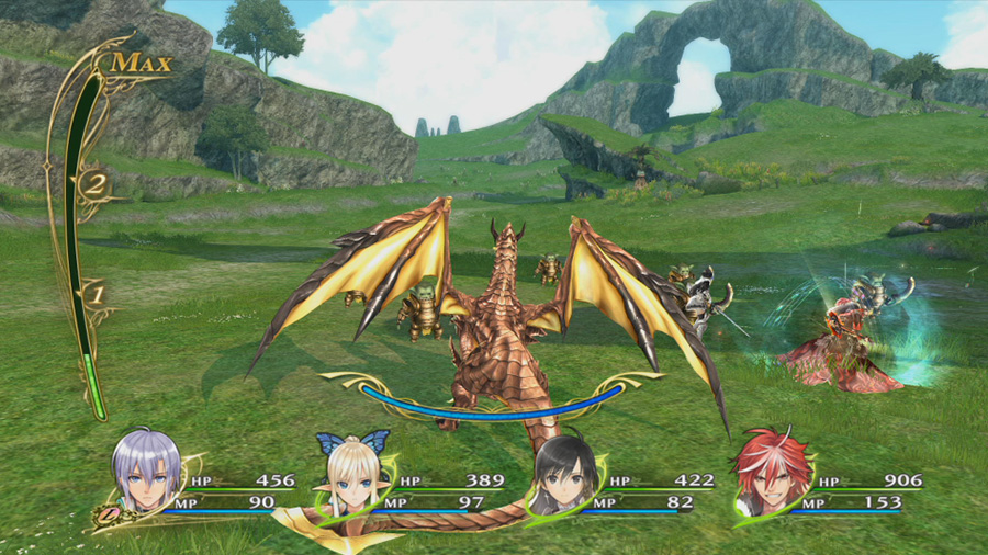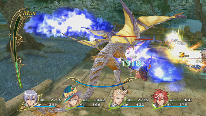 상쾌함이 넘치는 실시간 액션 배틀! 전투는 파티 중 한 명을 조작 캐릭터로 설정하여 자유자재로 조종할 수 있다. 콤보 공격을 기본으로 캐릭터마다 개성적인 특수 공격과 필살기, 마법을 구사하는 액션성이 뛰어난 전투가 특징이다.