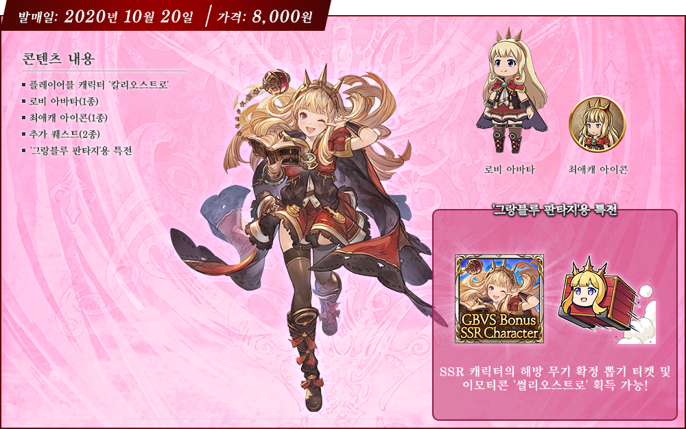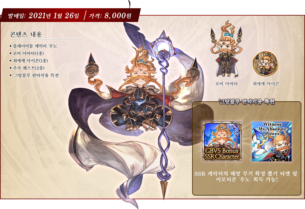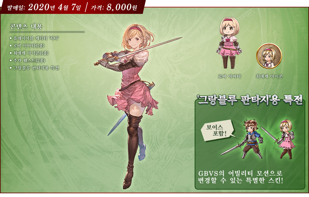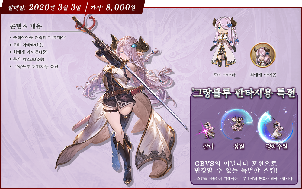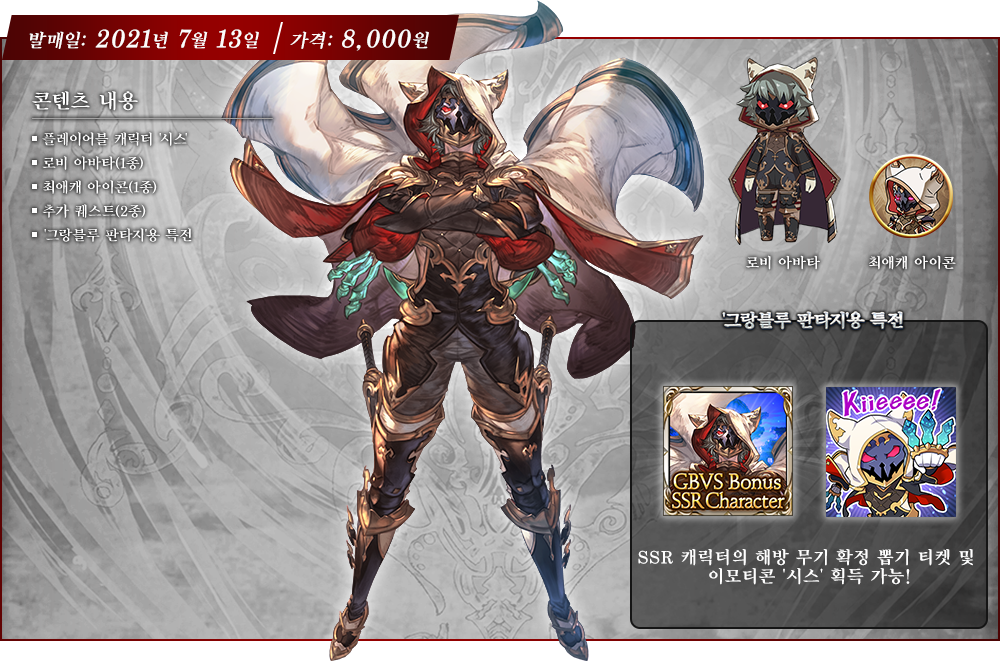 • 구매 특전 '그랑블루 판타지' 연동용 DLC (벽려의 증표×1, 직업 스킨 '얼터 에고 포비든')