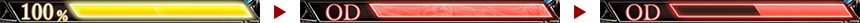 게이지는 시간 경과 및 입은 대미지에 따라 감소하며, 게이지가 모두 없어지거나 오의 및 해방 오의를 사용하면 오버 드라이브가 종료됩니다.