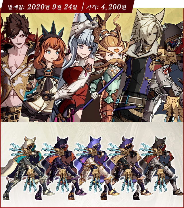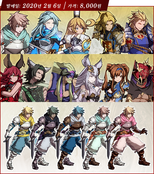 '그랑', '카타리나', '샤를로테', '랜슬롯', '퍼시벌', '페리', '로아인', '파스티바', '메테라', '제타', '바자라가'