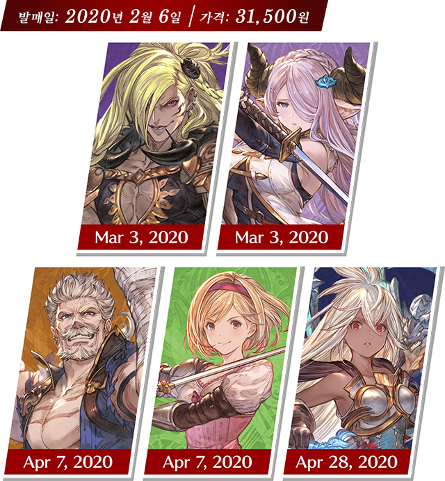 위 캐릭터 5명의 '그랑블루 판타지'용 특전(각 1종)