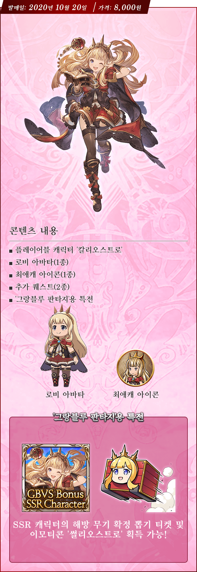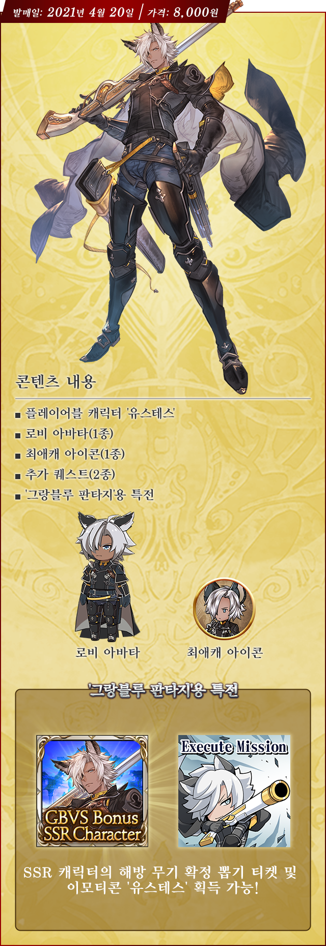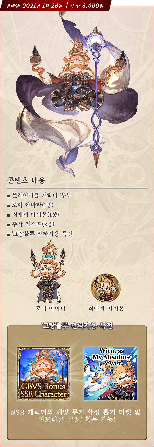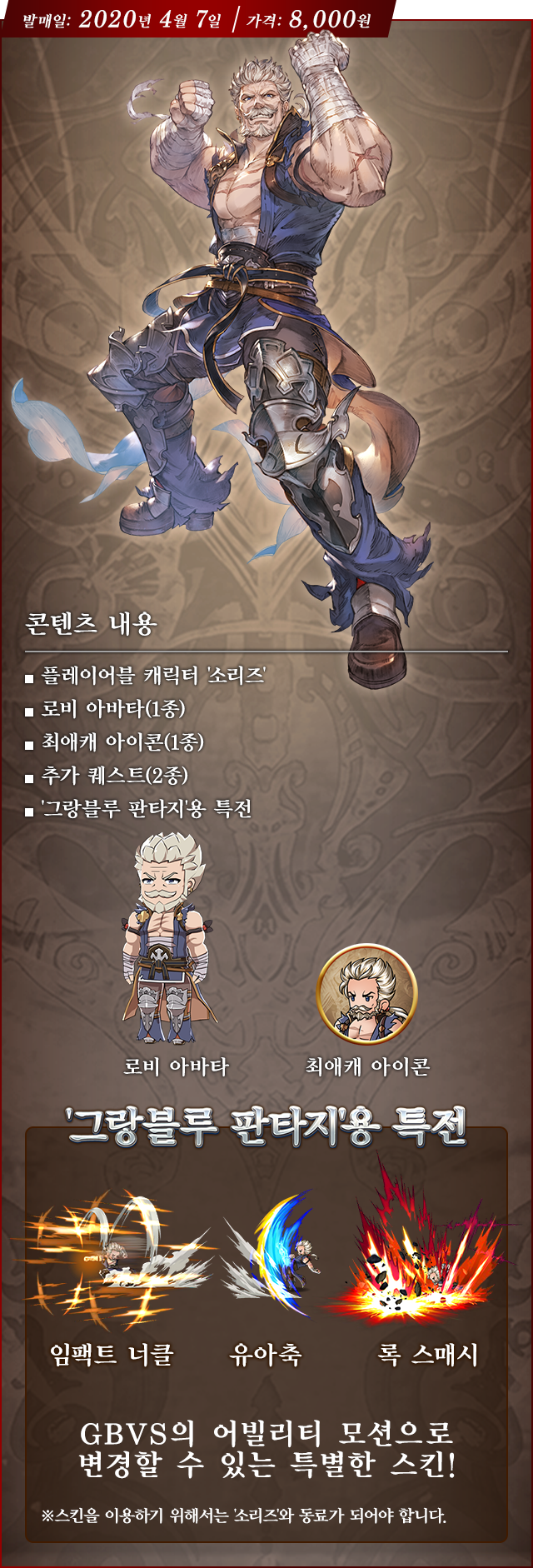 - 시즌 2의 추가 캐릭터가 세트로 된 'GBVS 캐릭터 패스 2'도 판매하고 있습니다. 중복 구매가 되지 않도록 주의하여 주십시오.