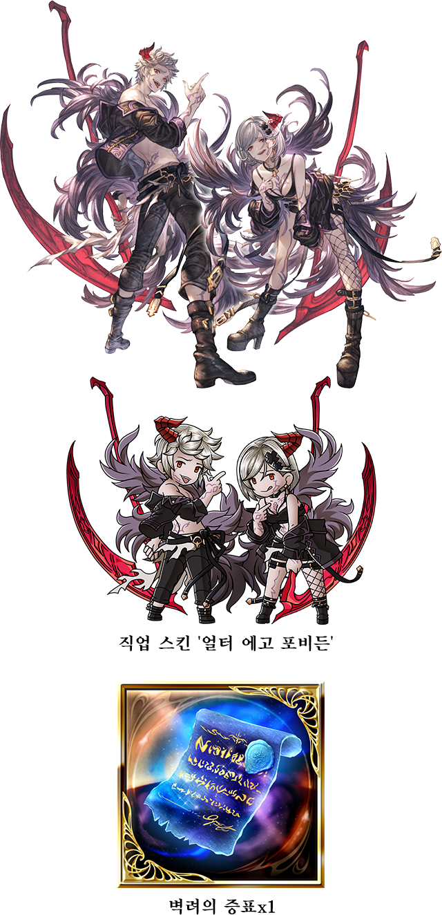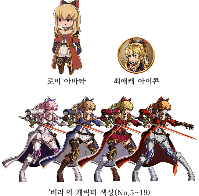 - 위 캐릭터 5명의 로비 아바타(각 1종)