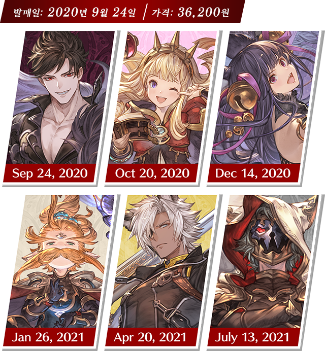 위 캐릭터 6명의 '그랑블루 판타지'용 특전(각 1종)
