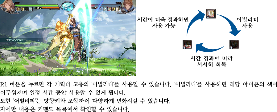 원버튼으로 사용할 수 있는 어빌리티, 쿨타임, 역전을 노릴 수 있는 해방 오의 등 심플하면서도 심오한 시스템으로,
