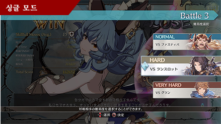 소위 '아케이드 모드'. 엔딩을 목표로 잇따라 등장하는 대전 상대를 쓰러뜨려 보세요. 임의로 난이도를 조정할 수도 있습니다.