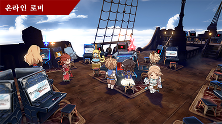 온라인 로비에서는 최대 64명이 채팅으로 대화를 나눌 수 있으며, 다른 플레이어와 대전할 수도 있습니다.